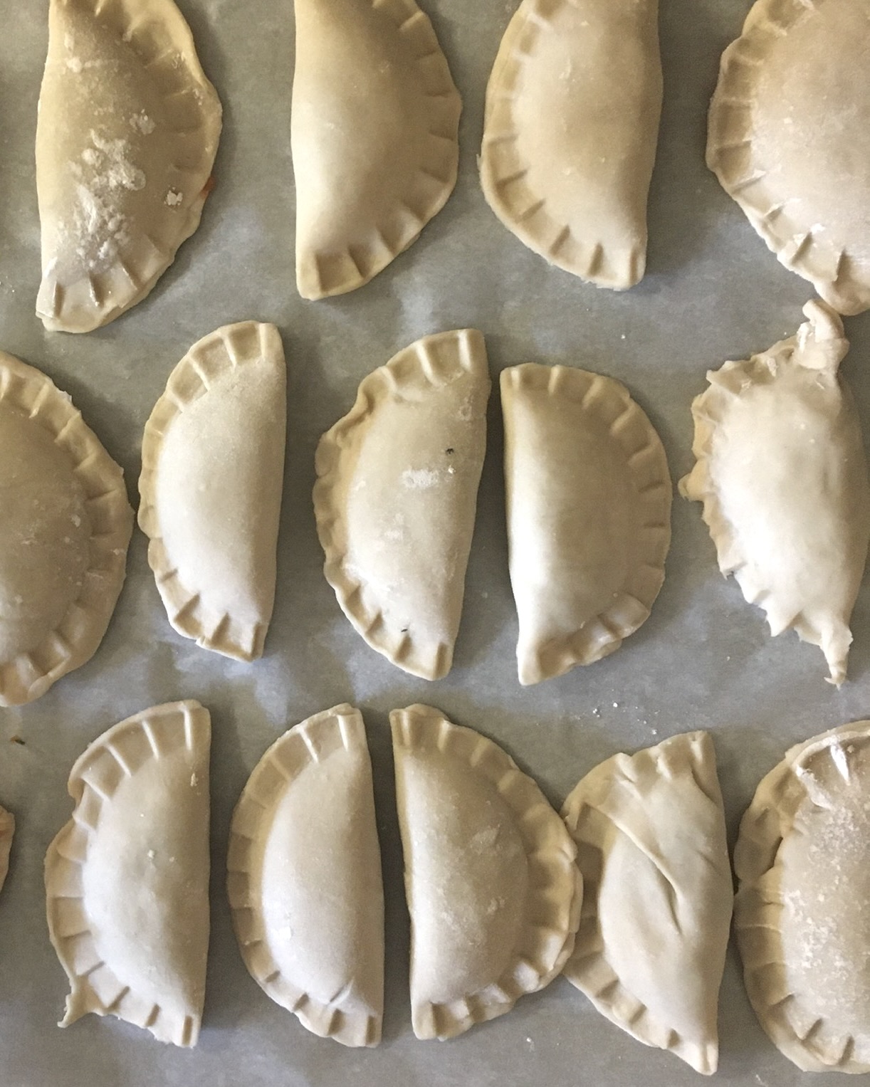 “Now,” Sabaleon said, “put a spoonful of filling in each circle, wet the edge with your finger, fold it into a half-moon, and seal it with a fork—just don’t overdo it.”